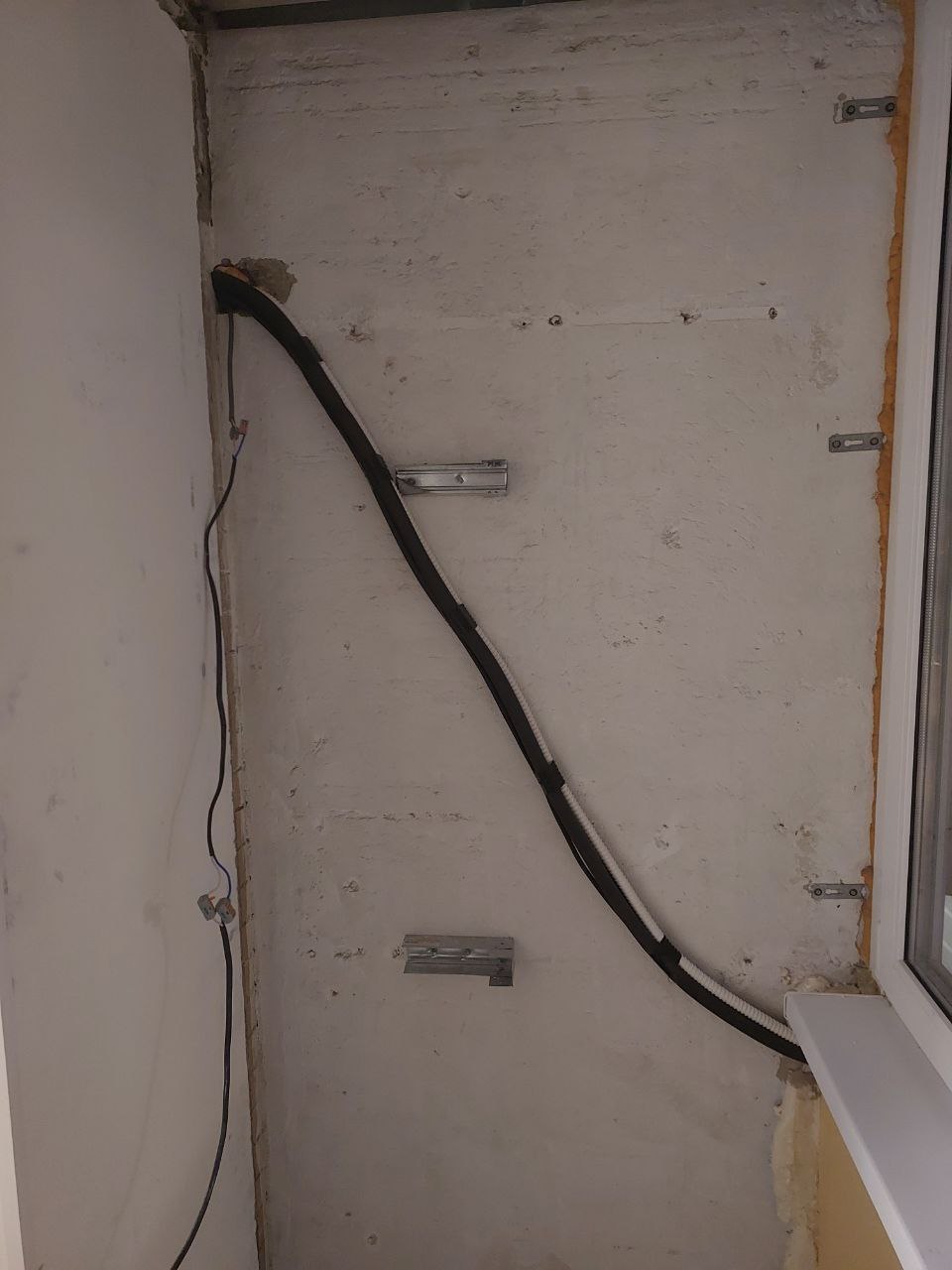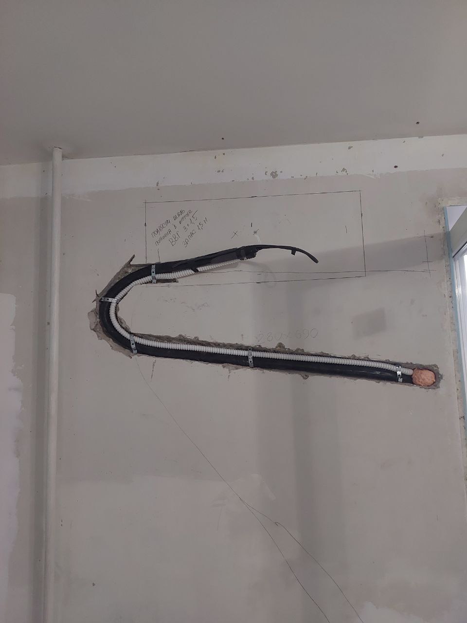 - Прокладка электрики к месту будущего внутреннего блока.